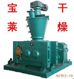 工作原理 粉狀物料均勻地經(jīng)加料器預(yù)壓縮后輸送至兩軋輥的弧形槽口內(nèi),兩軋輥表面均勻分布形狀相同并有良好可對性的半扁圓弧槽或其它形成的槽(漸開線形等),通過一對齒輪的嚙合傳動,使兩軋輥等速、反向旋轉(zhuǎn)并使物料瞬間強(qiáng)制壓縮,物料經(jīng)壓縮成形后承受的壓力逐漸減小,在重力作用下從槽內(nèi)脫落,進(jìn)入破碎整粒系統(tǒng),然后根據(jù)粒度要求過篩、分級,得到符合要求的均勻顆粒狀產(chǎn)品,篩下粉重新返回造粒。