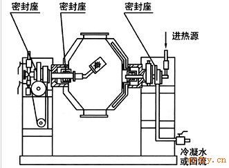 * 在密閉的夾層中通入熱能源(如熱水,低壓蒸汽或?qū)嵊停,熱量?jīng)內(nèi)殼傳給被干燥物料。