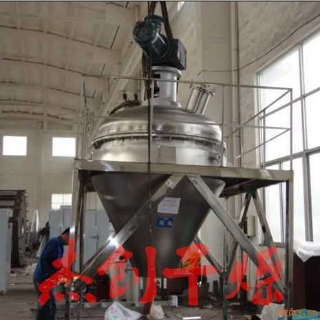 概述 錐形混合真空干燥機,是集混合、真空干燥于一體的多功能干燥機。物料在罐體內(nèi)邊加熱邊攪拌,經(jīng)加熱蒸發(fā)出的濕分由真空泵抽出,*終干燥的物料從錐體底部出口排出。錐形干燥機干燥效率高,干燥接觸面較大,物料排放既快又徹底,無死角,清洗也較方便。它可以同時替代混合及干燥設(shè)備(如:雙錐干燥機、耙式干燥機、雙錐混合機和雙螺桿混合機等)在同一臺設(shè)備內(nèi)完成混合、干燥、卸料全過程。也可進行冷卻、殺菌、反應(yīng)等操作。能廣泛應(yīng)用于醫(yī)藥,化工,農(nóng)藥,食品等行業(yè)。是混合、干燥的*佳設(shè)備,可實現(xiàn)全封閉,全過程的連續(xù)操作生產(chǎn)。 錐形螺帶真空干燥機的筒體內(nèi)無任何傳動機構(gòu),從根本上杜絕因潤滑泄露而導(dǎo)致物料污染,運行可靠穩(wěn)定,特別適合衛(wèi)生要求高的粉料,顆粒混合;同時也適用于粘性流體或稠狀、濕狀、膏狀為主物料的攪拌混合。 本機攪拌器由攪拌主軸和兩根與筒體內(nèi)壁表面吻合的螺帶及螺旋葉片組成。旋轉(zhuǎn)時,螺帶和螺旋葉片將物料由下向上沿筒體內(nèi)壁盤旋提升,同時又由于運轉(zhuǎn)時螺帶帶面上的各點線速度不同,物料在其作用下產(chǎn)生了不規(guī)則的對流、剪切、摻混、擴散,形成全方位的三維運動。攪拌軸中心是螺旋葉片,運轉(zhuǎn)時將靠中心的物料提升、拋出,被拋出的物料一部份進入螺帶,而被螺帶拋出的物料又被吸收到螺旋葉片的螺旋包絡(luò)體內(nèi)而提升。如此不斷反復(fù)循環(huán),使物料在短時間內(nèi)達到均勻混合。 適用范圍 化工、農(nóng)藥、染料、醫(yī)藥、化肥、冶金、礦山、食品、塑料、添加劑等行業(yè)物料的攪拌混合干燥。內(nèi)加熱螺帶錐形真空干燥機是一種利用螺帶將物料旋轉(zhuǎn)提升及圓錐夾套、空心螺帶內(nèi)同時通入傳熱介質(zhì)(如熱水、導(dǎo)熱油、蒸汽等),使加熱后物料從四周提升并從中間下落,快速不斷的循環(huán)翻轉(zhuǎn),并通過筒體內(nèi)抽真空將水汽及時帶走, 使物料在短時間內(nèi)達到干燥和混合目的。與傳統(tǒng)的立式混合機相比,筒體內(nèi)無任何傳動機構(gòu),從根本上杜絕因潤滑油泄漏而導(dǎo)致物料污染,運行可靠穩(wěn)定,特別適宜衛(wèi)生要求高的粉料、顆粒混合;同時也適用于粘性流體或稠狀、濕狀為主物料的攪拌混合;與其它臥式干燥機相比,具有出料方便,可以100%完全出料,操作、維修方便。它的干燥效率是同等規(guī)格“雙錐回轉(zhuǎn)真空干燥機”3-5倍。 |