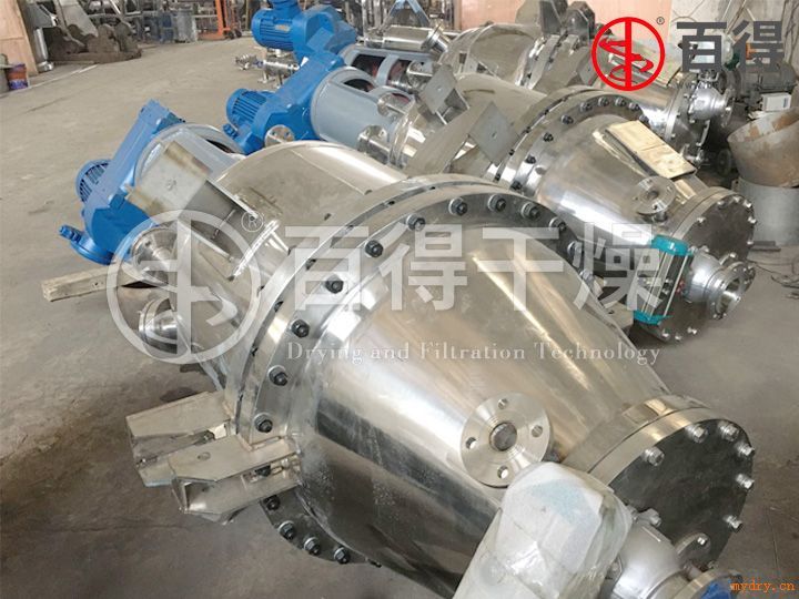 目前醫(yī)藥行業(yè)中廣泛應(yīng)用的過濾洗滌二合一裝置,由于其內(nèi)部都是采用平板式燒結(jié)網(wǎng)過濾,通過內(nèi)部攪拌器的升降和旋轉(zhuǎn)的雙重作用,將內(nèi)部固體殘留物排出機外,但常規(guī)的裝置不僅過濾效果不佳、還極易出現(xiàn)濾液滲漏,且使用者的洗滌的麻煩,并不利于使用者進行多次操作。而且常規(guī)的過濾洗滌二合一往往無法快速的將濾液排出,且還不便于操作者對裝置清理完全,還容易出現(xiàn)濾液滲漏浪費的情況。 ![]() 百得干燥研發(fā)的高效筒錐式過濾洗滌二合一,頂蓋、筒體及錐球型殼體通過法蘭相互連接形成封閉的容器,攪拌驅(qū)動裝置帶動中心軸及環(huán)繞中心軸的螺旋攪拌裝置進行旋轉(zhuǎn),帶動物料實現(xiàn)攪拌作業(yè);在容器外側(cè)壁的過濾裝置能夠?qū)ξ锪线M行過濾,濾液穿過過濾裝置被濾液收集板收集,并通過濾液出口排出筒體。容器底部的錐球型殼體配合與錐球型殼體的球面結(jié)構(gòu)內(nèi)表面貼合的底攪拌裝置,可使得容器內(nèi)的物料不存在操作死角,使得攪拌更均勻,且不會造成物料的浪費。 ![]() 錐形過濾洗滌二合一 筒錐式過濾壓濾機 筒錐式二合一過濾洗滌設(shè)備 工作原理 筒錐式過濾洗滌二合一的錐體或筒體內(nèi)設(shè)置有多層孔板及過濾介質(zhì)疊合而成過濾裝置,內(nèi)部設(shè)置有攪拌軸和變角度變導(dǎo)程螺旋攪拌裝置,在過濾時對物料進行攪拌、提升和刮料操作,在卸料時自動推出濾餅。本機可進行真空過濾或加壓過濾。在過濾過程中,機內(nèi)刮刀不斷把濾網(wǎng)上的濾餅刮下,使物料在薄層濾餅條件下進行過濾,過濾速率很高。 物料如需洗滌,可先將料漿在機內(nèi)濾干,然后加入洗滌液,利用機內(nèi)刮刀、攪拌器及擠壓螺旋等的旋轉(zhuǎn)攪拌,使濾餅再漿,這時再通過加壓或抽真空的方法把再漿料過濾成濾餅。這樣反復(fù)多次再漿過濾,可把物料徹底進行洗滌,*終再把濾餅全部擠出機外。 (1) 壓濾或真空過濾 將上游反應(yīng)釜或結(jié)晶設(shè)備產(chǎn)生的固液混合物晶漿放料到二合一設(shè)備罐體內(nèi),打開下部濾液出口,在設(shè)備內(nèi)通入壓縮空氣或氮氣等氣體,對經(jīng)過反應(yīng)的固液混合物進行加壓過濾,直到把機內(nèi)物料壓干。也可在濾液出口抽真空,對物料進行真空過濾,直到把濾液抽干為止。過濾時可使空心軸和空心螺帶按順時針方向旋轉(zhuǎn)(從頂部往下看),對物料進行提升,并使空心螺帶在旋轉(zhuǎn)時限制濾餅層的厚度,使物料在薄的濾餅層條件下進行過濾,以提高過濾速率。對于易過濾的物料,過濾時可不攪拌,直接把物料濾干。 (2) 可多次洗滌過濾 有些物料過濾完以后,還要進行多次洗滌。反應(yīng)過濾干燥多功能機用于對物料的反復(fù)多次洗滌是理想的設(shè)備。物料在機內(nèi)壓干后,可在頂部洗滌液入口加入洗滌液, 然后通過空心軸和空心螺帶的攪拌,對濾餅進行均勻再漿,再漿攪拌均勻后再把物料壓干。若洗滌一次不夠,可進行多次洗滌,這時重復(fù)上述步驟多次即可,操作方便,勞動強度極低。 以上述方法對物料進行洗滌,我們稱之為間歇洗滌法。由于每次是把物料壓干后再加洗滌液進行洗滌,因而操作時雖然開關(guān)閥門次數(shù)多一點,但用的洗滌液較少。該機也可對物料進行連續(xù)洗滌,即把洗滌液用泵或其它方法連續(xù)壓入,利用洗滌液的壓力進行過濾,空心軸和空心螺帶則不斷地攪拌,濾液從濾液出口連續(xù)排出,直至達到洗滌要求為止,*后再把濾餅壓干。這種連續(xù)洗滌的方法,一般比間歇洗滌用的洗滌液量要多,但操作更方便。 ![]() 錐形過濾洗滌二合一 筒錐式過濾壓濾機 筒錐式二合一過濾洗滌設(shè)備 性能特點 (1) 全封閉系統(tǒng),操作環(huán)境相當好,特別適用于處理有毒、易燃、易爆的危險產(chǎn)品及不允許有污染的鮮美食品生物制品、藥品和生物制品等的過濾洗滌。 (2) 連續(xù)操作,勞動強度極低。操作彈性大,能通過調(diào)整過濾壓差、轉(zhuǎn)速、螺旋擠壓導(dǎo)程等調(diào)節(jié)操作周期,使之適應(yīng)工藝條件的變化。 (3) 既能濃縮,又能壓濾。特別是需要對物料進行洗滌時,可先對物料進行濃縮,并在懸浮狀態(tài)下進行徹底地洗滌,*后再壓濾,這樣可減少物料的搬運,減少浪費,洗滌時不用再漿,加工出來的產(chǎn)品質(zhì)量很高。 (4) 該機可在過濾介質(zhì)表面形成很薄的濾餅或者在無濾餅條件下進行過濾,單位過濾面積上的過濾速率很高,因此設(shè)備小而緊湊。 (5) 可對物料進行方便的反復(fù)多次過濾、洗滌,使多個單元設(shè)備的作用在這一臺機上完成,從而使設(shè)備成本、占地面積、勞動強度、能耗等都大大降低。同時筒錐式過濾洗滌二合一時特別適合洗滌要求高,需反復(fù)多次再漿洗滌過濾的物料,且可節(jié)省洗滌液。 (6) 使物料在較高的壓力下進行加壓過濾,也可進行真空抽濾。過濾機外部加夾套,對物料進行加熱、冷卻或保溫過濾,以滿足各種工藝條件的要求。 錐形過濾洗滌二合一 筒錐式過濾壓濾機 筒錐式二合一過濾洗滌設(shè)備 技術(shù)參數(shù)表 ![]() 錐形過濾洗滌二合一 筒錐式過濾壓濾機 筒錐式二合一過濾洗滌設(shè)備 設(shè)備安裝照片 ![]() ![]() |